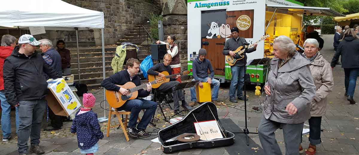 Lustiger zu ging’s auf dem Feierabendmarkt, nebenan im Bismarck-Quartier. Chillige Livemusik lockte viele Besucher in die kleine Fußgängerzone. Dazu gab’s 250 Bratwürste, die in kürzester Zeit für einen guten Zweck den Besitzer wechselten. Nebenan servierte man leckere Kartoffelwaffeln, Käse aus ganz Europa, Honig, Pulled Pork und vieles mehr.
