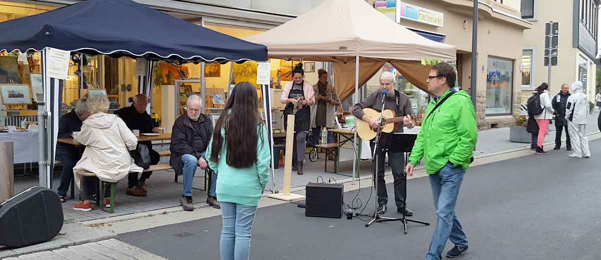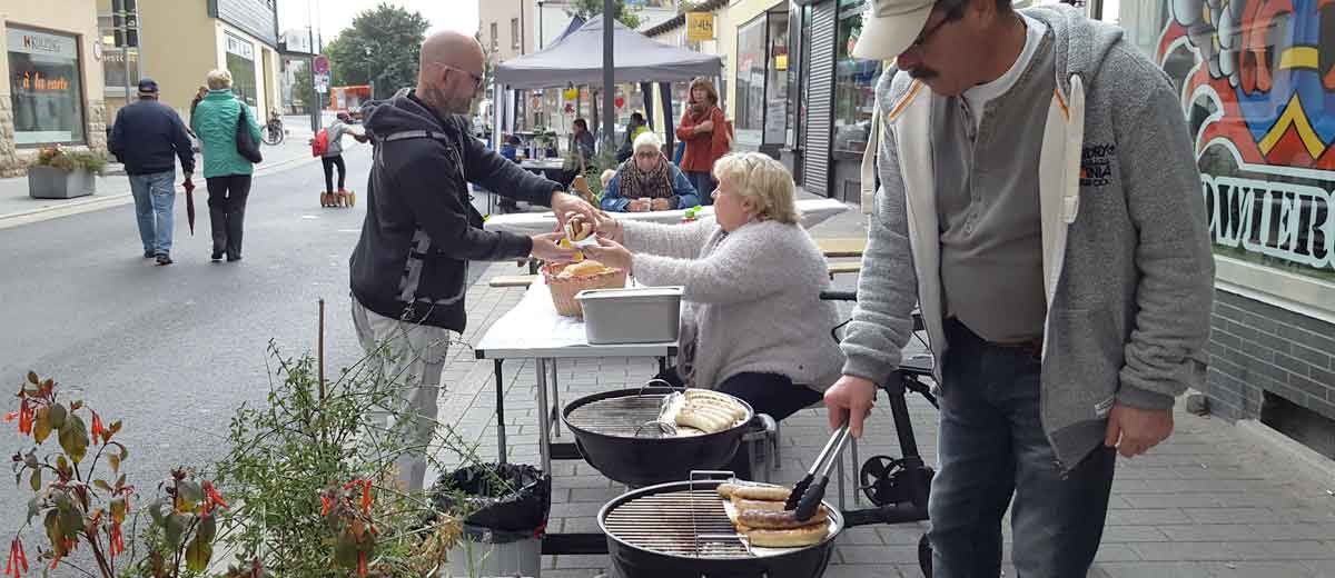 Der Wettergott war gnädig und so kamen dann doch allerlei Besucher zum Baustellenfest auf der Kaiserstraße. Einige Geschäftsinhaber hatten sich viel Mühe gegeben, den Besuchern etwas Ordentliches anzubieten.