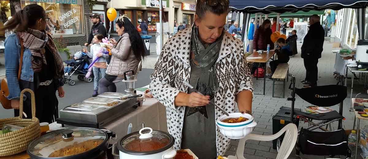 So gab es selbst gemachten Grünkohleintopf, afrikanische Spezialitäten und  Kuchen beim Kunstverein, beste Bratwurst beim Tattoo-Experten „Orbit Voodoo“ und beim Versicherungsbüro Heyermann. Kuchen gebacken hatte auch das Sonnenstudio, der gegen eine Spende gleich vor Ort gegessen werden durfte.