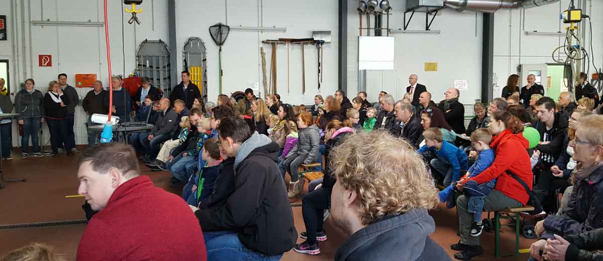 Von wegen Ehrenamt: Auch die Kinderfeuerwehr wird ausschließlich von ehrenamtlichen Leuten geschultert. Startkapital für die jüngste Truppe der Wehr gibt’s auch schon: Zur Tränen gerührt erzählte Wehrleiter Tonetti von dem verstorbenen Kameraden Thomas Brandt, der noch zu Lebzeiten gebeten hatte, auf Blumen zu seiner Beerdigung zu verzichten und stattdessen Geld für die Kinderfeuerwehr zu spenden. Eine dicke Spende kam auch vom Lions Club. Der hatte mit dem Verkauf seines Kalenders 5000 Euro eingenommen. Die kamen auch in die Kinderkasse.