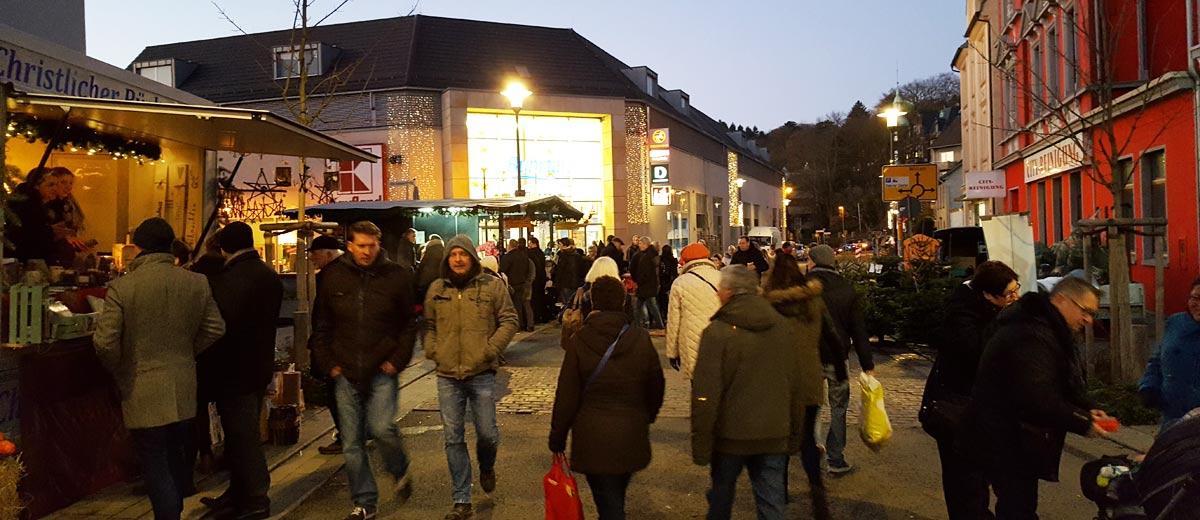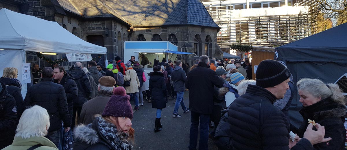 Da soll noch mal jemand sagen, man könnte in Wetter keinen Weihnachtsmarkt machen. Die zweite Ausgabe des vergrößerten Weihnachtsmarktes war ein großer Erfolg. Bei perfektem Glühweinwetter kamen richtig viele Besucher in die Kaiserstraße und zu den Büdchen rund um die Lutherkirche.