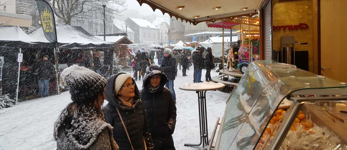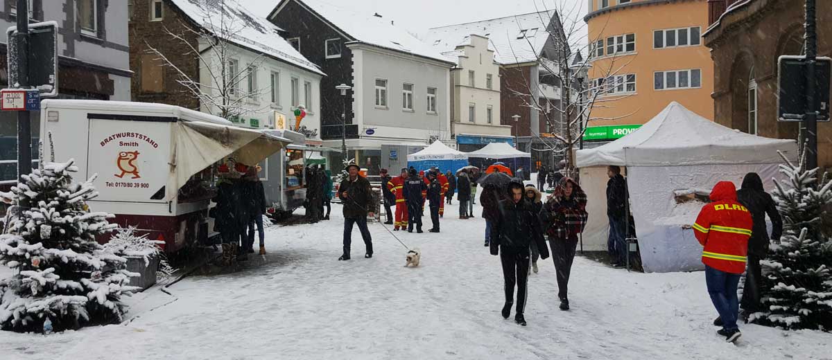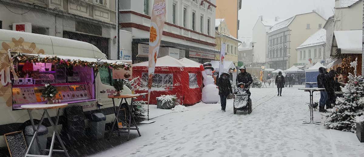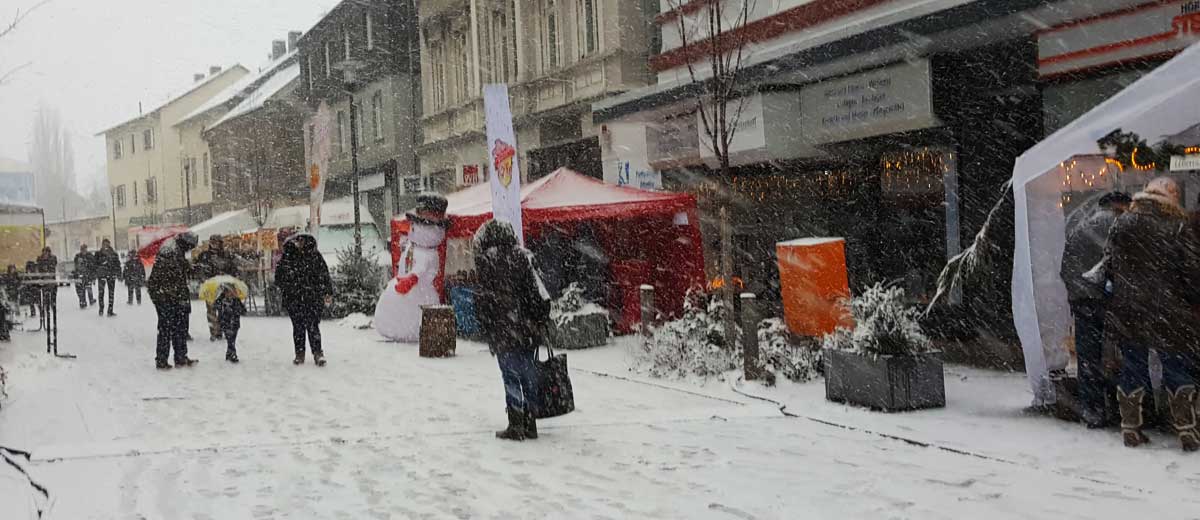 Der Wettergott ist ein Weihnachtsmann – das hat er am vergangenen Sonntag eindrucksvoll bewiesen. Statt des üblichen Herbstwetters gab’s zum diesjährigen Weihnachtsmarkt die perfekte Kulisse: Dichtes Schneetreiben hüllte die graue Innenstadt in ein weißes Gewand.