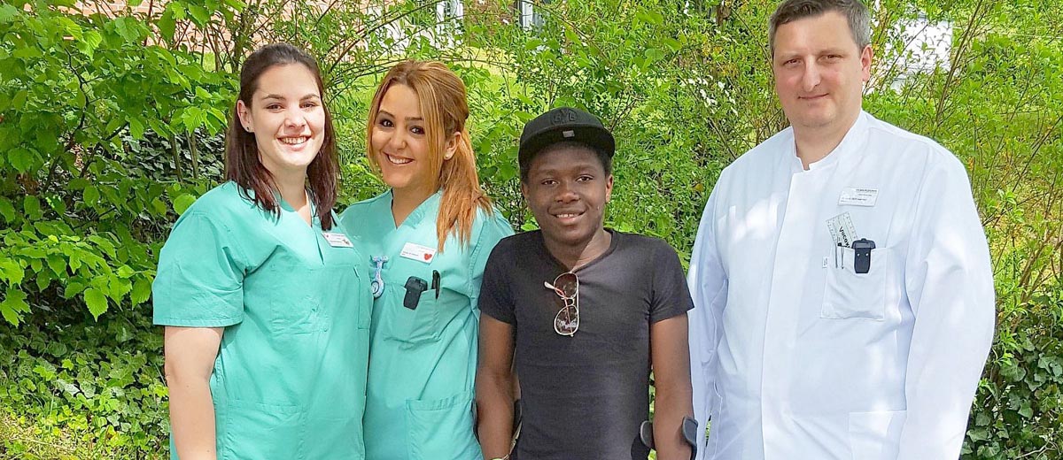 Pedro strahlt über das ganze Gesicht: Er ist wieder in seiner Heimat angekommen bei seiner Familie und den Freunden in Angola. Und mit einem gesunden Bein....